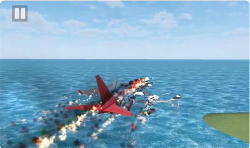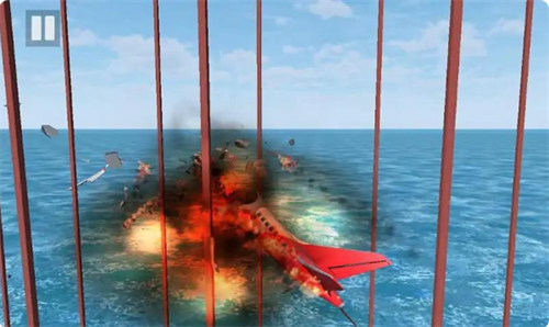 4、操作失误会导致飞机坠毁,机身会出现火焰与破损效果,本局飞行挑战失败。