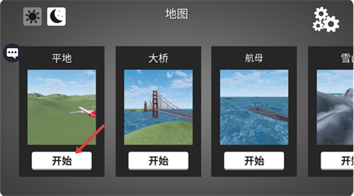 1、在【地图】界面选择【平地】场景,点击下方【开始】按钮,进入对应的飞行关卡。
