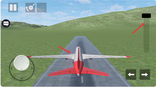 2、飞机位于跑道上时,滑动右侧的推力滑块,可为飞机提供向前的动力。