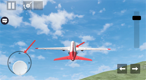 3、操作左侧摇杆向上推动,可抬起飞机机头,使飞机顺利升空飞行。