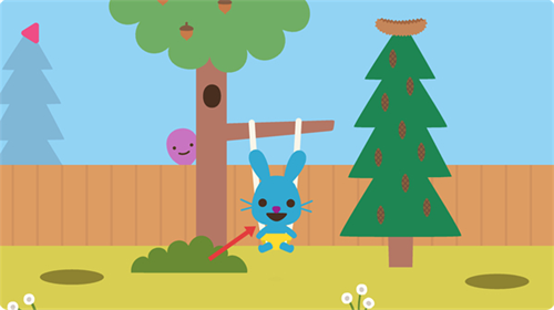 3、操控角色坐上【黄色秋千】,体验摇摆乐趣,同时推进场景内的互动进度。
