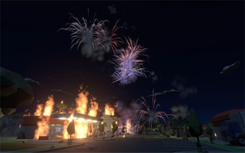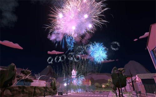 2、游戏构建了一个小镇,并让你可以在小镇的各个地点放置烟花。