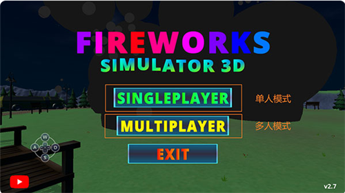 进入游戏后,你可以选择游戏模式,这个烟花模拟器3d共有两种游戏模式:【SINGLEPLAYER】单人模式和【MULTIPLAYER】多人模式,其中多人模式,需要开启加速器;